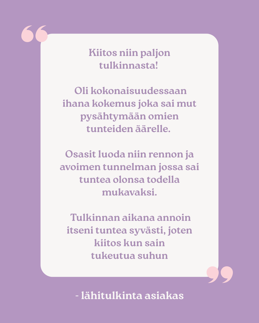 60 minuutin tulkintasessio sisältää: